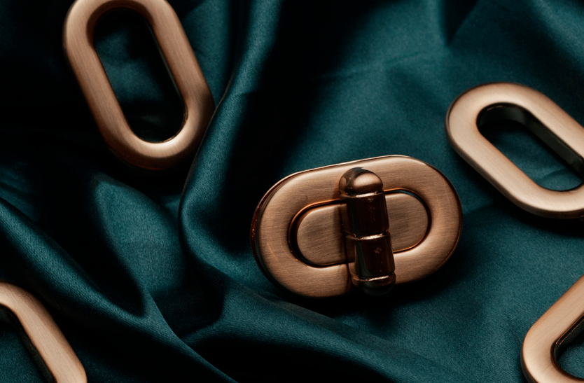 Metais de alta moda, para bolsas, cintos e outros acessórios.